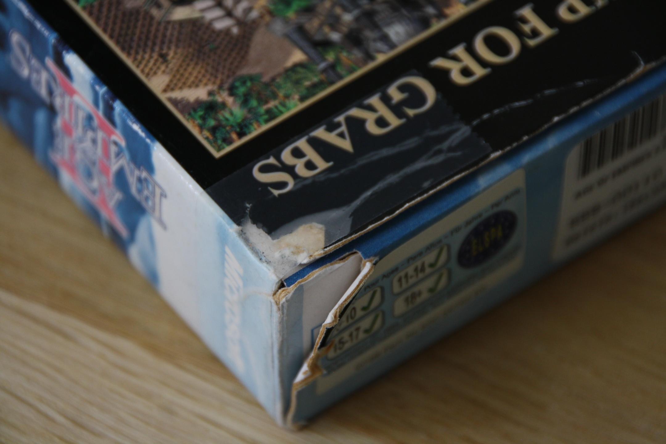 A bit worn with some tape on two corners which seem a bit torn. Slightly discolored on one side. But man, did I play this game a lot at university!