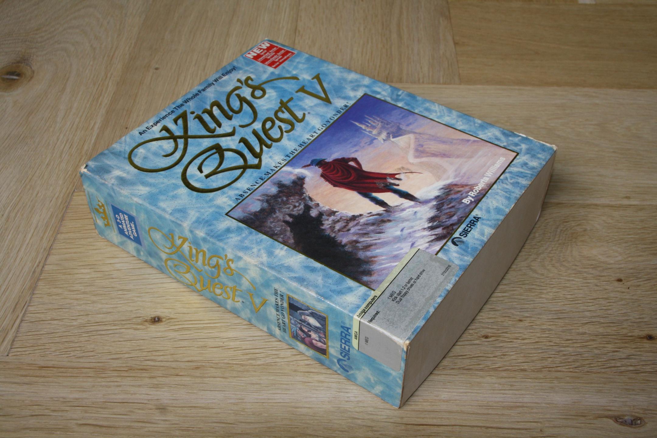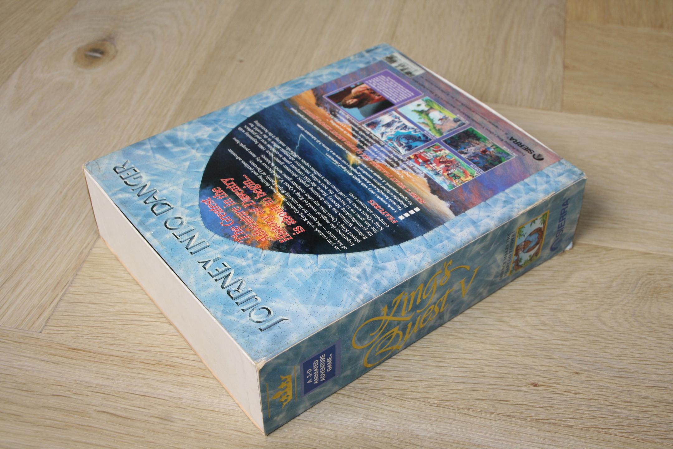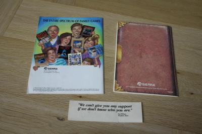 The box in my collection is the 3.5" floppy-disk version for the Commodore Amiga, as I bought it in my childhood together with my father in a specialized store in Rotterdam for about 100 guilders. As you can see, it is a beautiful box with golden embossed lines and text and sparkling throughout the cardboard. It has some shelf wear, unfortunately.