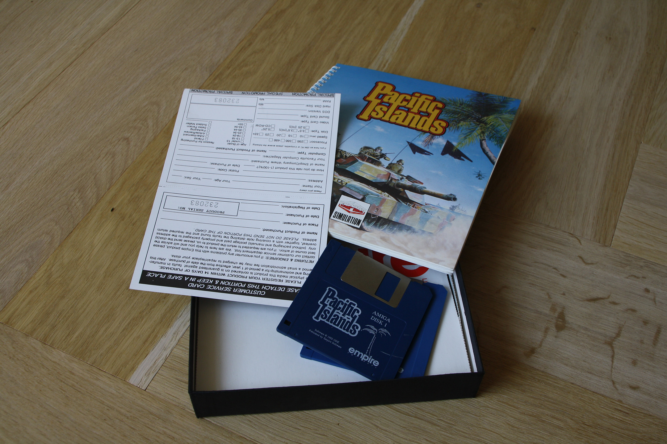 Great box with vibrant colors. It is larger than most big-boxes of that time at 236mm x 205mm. The inside box is black which has left an impression on the inside of the cover. No biggy but the designer should have better anticipated that.