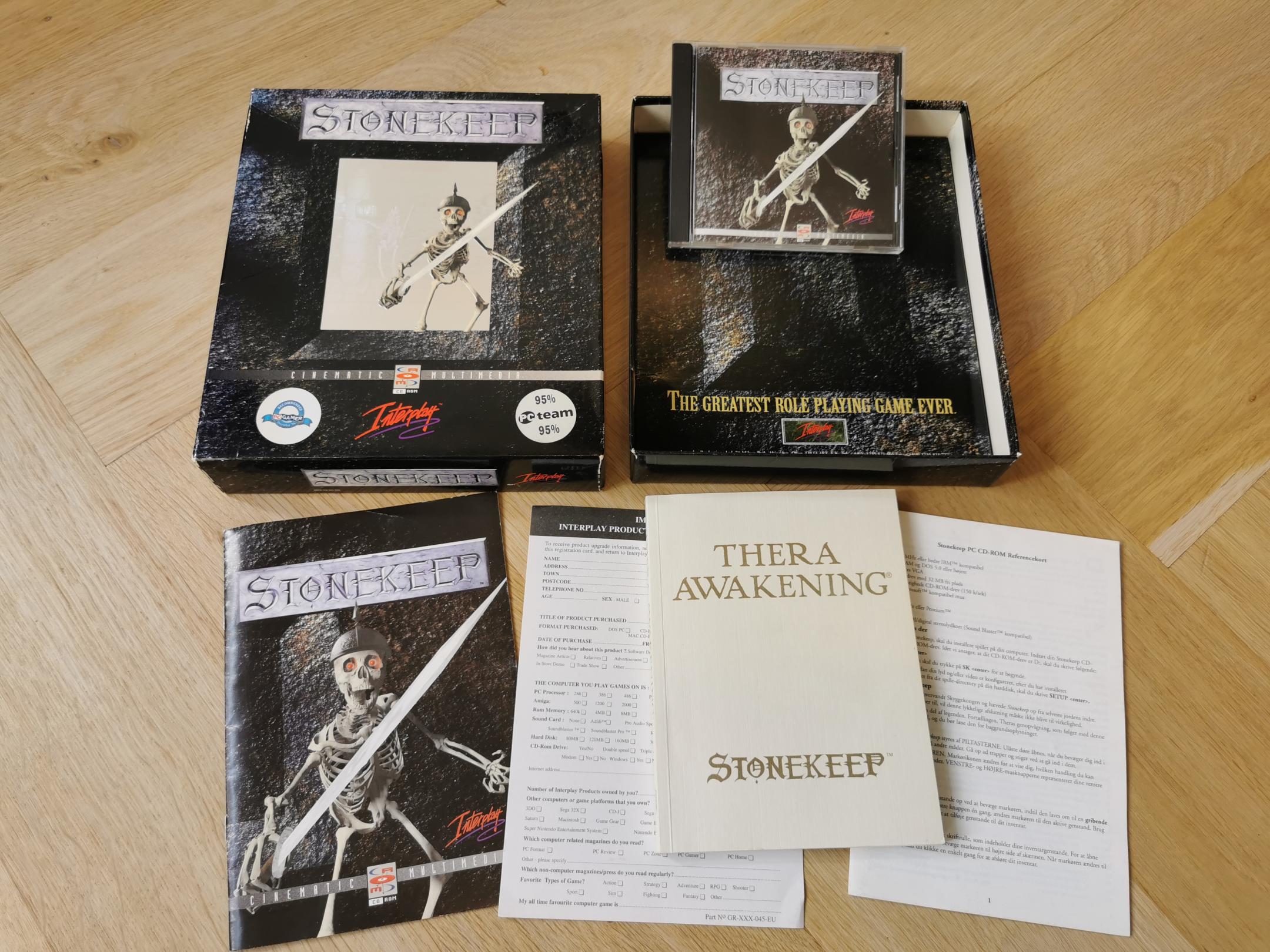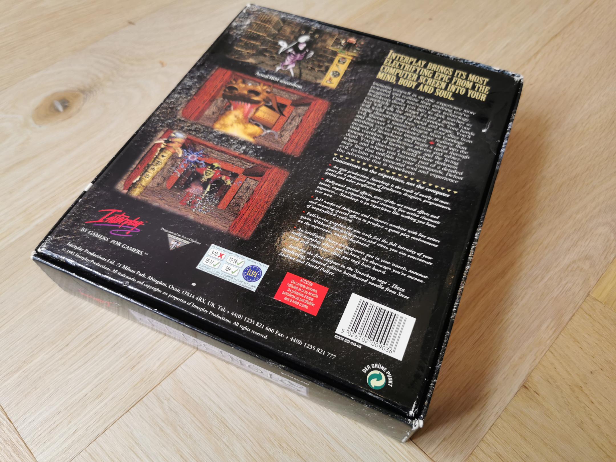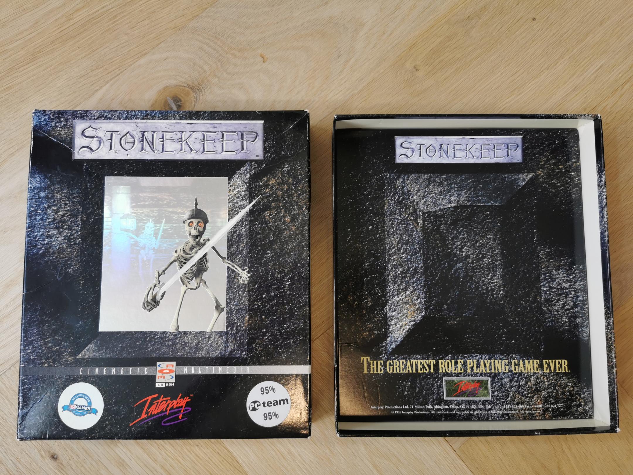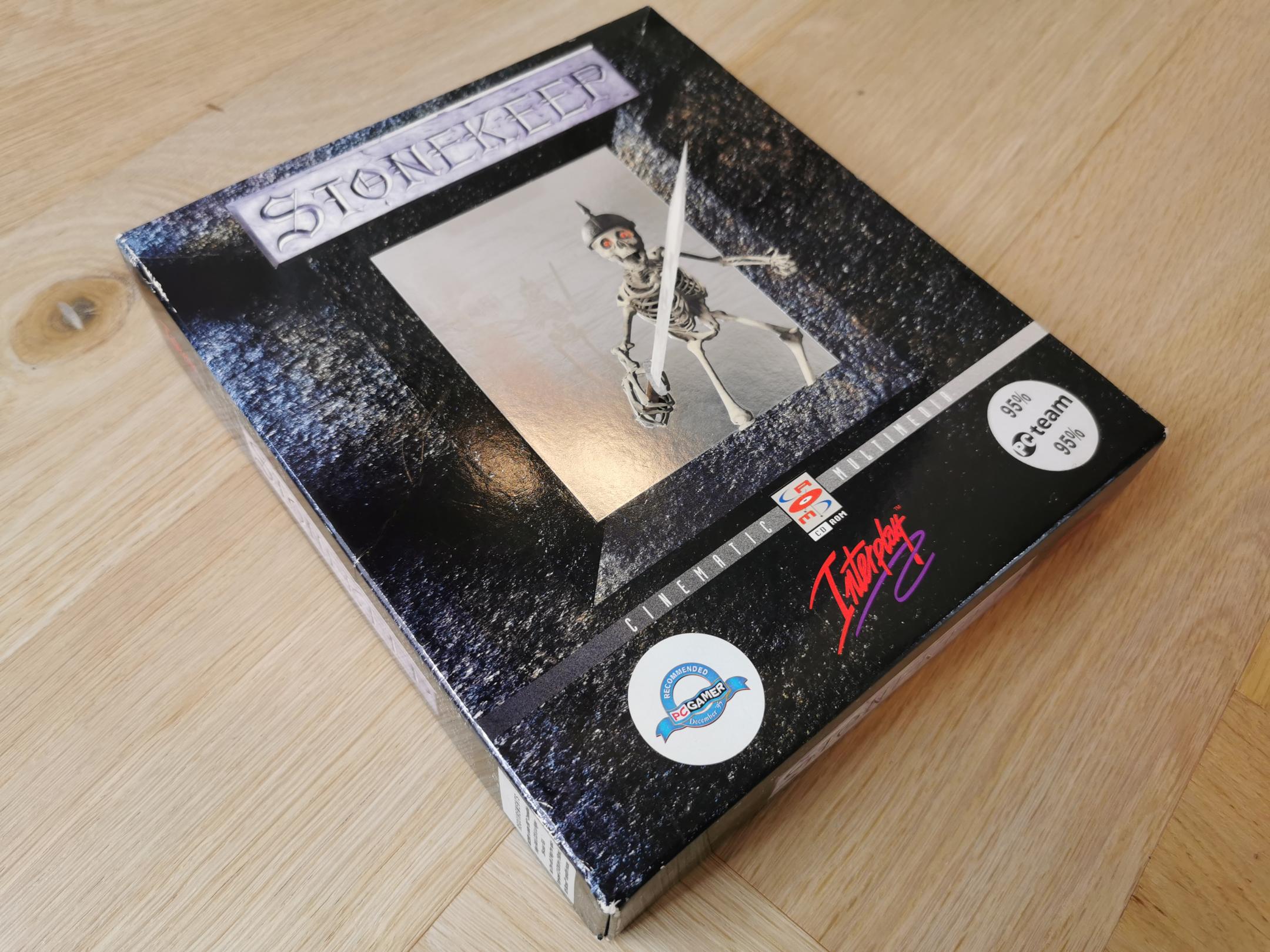 Very cool box with an holographic rectangle on the front with an embossed skeleton overlay. The holographic features another skeleton next to a pillar and a lamp. Never played this game, I got it from a connection who worked as a game distributor and ended up with quite a large collection.