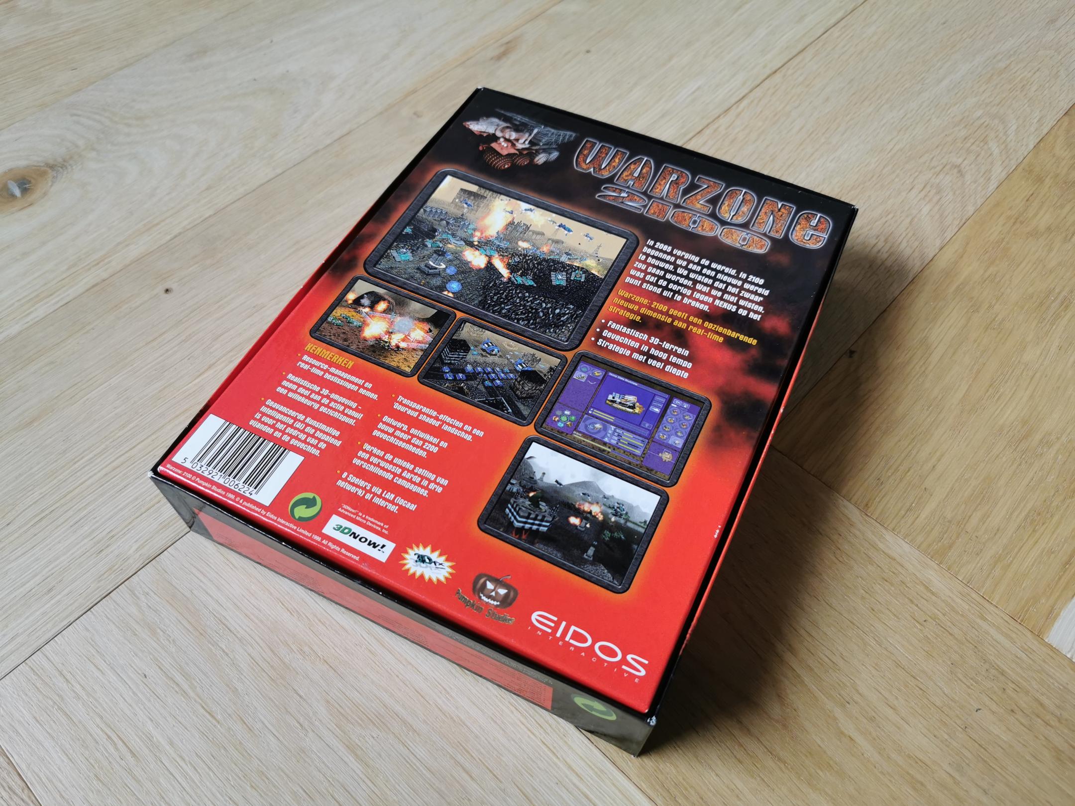 I bought this game as part of a batch of 13 big boxes via markplaats.nl. They weren't expensive but the photo was not very clear so I took a bit of a gamble buying them. Well, about all of them have sticky tape on them and weird colored dot-stickers. Like they have been on sale somewhere. Some of the boxes were in quite bad shape. It didn't help they were shipped with hardly any protection around them and nothing between them. The Age of Empires II and Worms 2 boxes were quite squished :( This box is actually in quite good shape, except for some sticker damage on the front. Hardly any scuff marks on the corners.